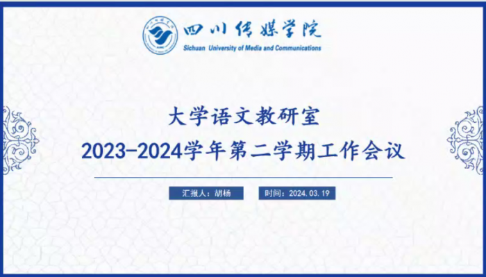 根据中华传统文化学院近期工作重点,大学语文教研室于2024年3月19日以线上的方式召开了第二学期第二次工作会议。本次会议由教研室主任胡杨负责主持,教研室全体成员列席会议。会议的议题主要是传达上级会议精神,并布置近期教研室工作的分工。