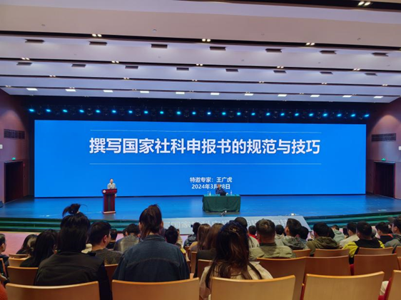 3月28日,中华传统文化学院大学语文教研室主任胡杨,教研室成员杨紫艺、毛岸茜、刘馨雨、张亦阳等一众老师齐聚西区2A10学术报告厅,聆听国家社科基金项目和省哲学社会科学规划项目评审专家王广虎教授题为“撰写国家社科申报书的规范与技巧”的学术讲座。讲座由舞蹈学院院长赵晓玲主持,舞蹈学院、体育部、中华传统文化学院等其它院系100多名老师参加了本次讲座。