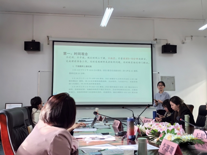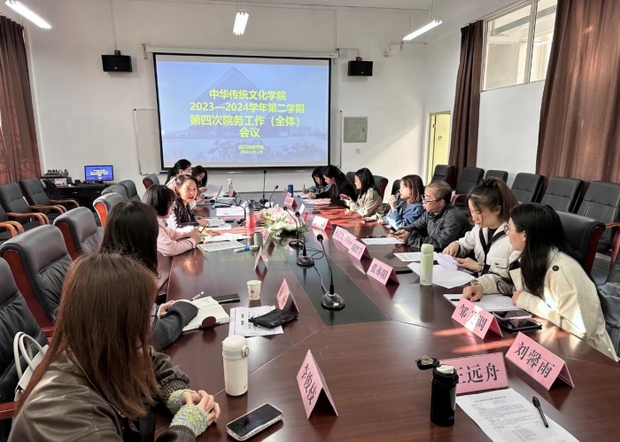 2023年3月29日上午9时,中华传统文化学院在东区A2-208会议室召开了2023-2024学年第二学期第四次院务工作会议。会议由院长李峰主持,中华传统文化学院全体教师参加了会议。