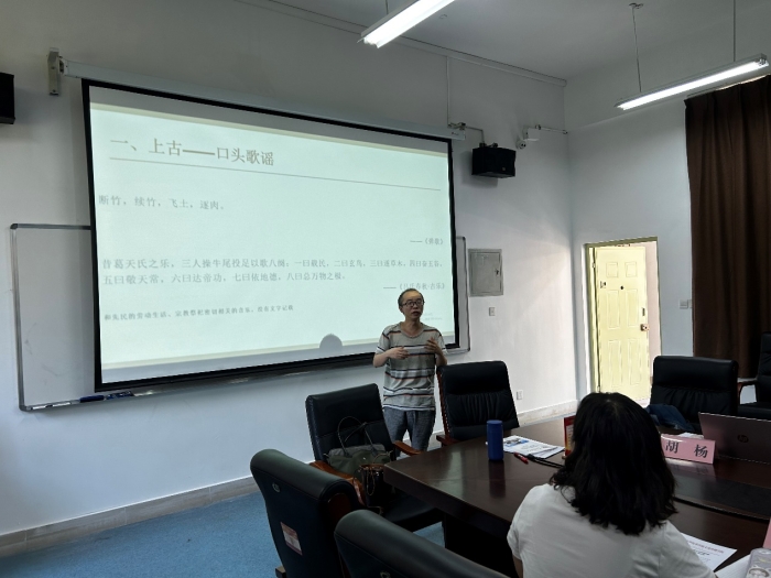 紧接着,周绍学老师则聚焦于“上古——口头歌谣”部分的教学心得。他通过深入浅出的讲解,揭示了口头歌谣作为古代文化重要载体的独特价值,以及其在文化传承中的重要作用。周老师还分享了自己在引导学生理解歌谣背后的社会背景、风俗习惯等方面的创新教学方法,激发了大家对于传统文化教学新思路的探讨。