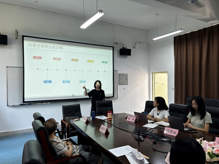 随后,李俊枝老师以其深厚的学术功底,生动讲述了中国诗歌发展史的教学心得。李老师通过丰富的历史案例和诗词佳作,引导学生穿越时空,感受不同历史时期诗歌的独特魅力与思想内涵,极大地拓宽了学生的文化视野。她的分享让在场的每一位教师都受益匪浅,对如何更好地将历史文化融入课堂教学有了更深的理解。