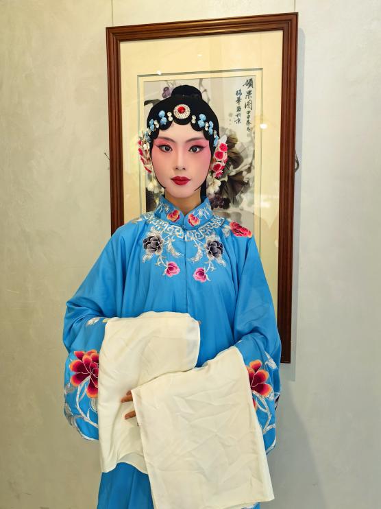 戈心悦老师的非遗学习之旅,是古老非遗与青春力量的“双向奔赴”。在成都非遗课堂上,她与众多90后、00后学员一起,从零开始,系统学习了戏曲舞台化妆基础知识、传统戏曲舞台旦角妆的基本化法和技巧以及戏曲舞台旦角梳妆造型技巧等。从打底、打面红、定妆到画眉,再到包头、穿戏服、戴配饰,每一步都凝聚着他们对传统文化的敬畏与热爱。