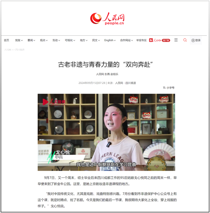 在中华优秀传统文化的璀璨星河中,非物质文化遗产如同一颗颗璀璨的明珠,闪耀着历史与文化的光芒。近日,四川传媒学院中华优秀传统文化传播学院教师戈心悦,因其在非遗戏曲妆造领域的突出学习成果,被人民网专题报道,再次点燃了社会各界对中华传统文化传承与创新的关注热情。