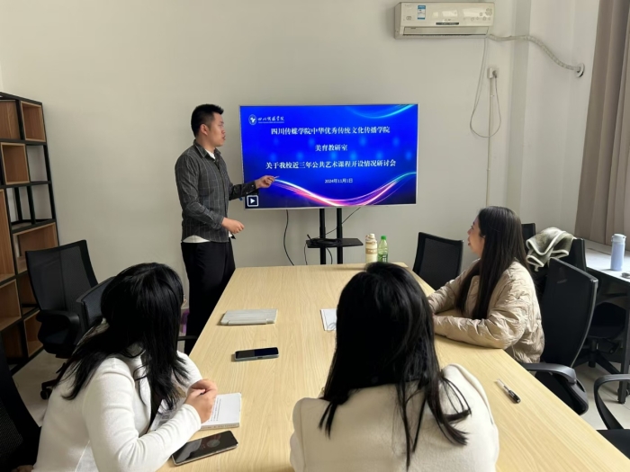 2024年11月1日,四川传媒学院中华优秀传统文化传播学院美育教研室在A2-313召开了“关于我校三年公共艺术课程开设情况研讨会”。此次会议旨在全面总结和分析近三年(2021-2024学年)我校公共艺术课程的开设情况,通过数据分析和经验交流,为进一步优化美育教学规划和资源配置提供科学依据。