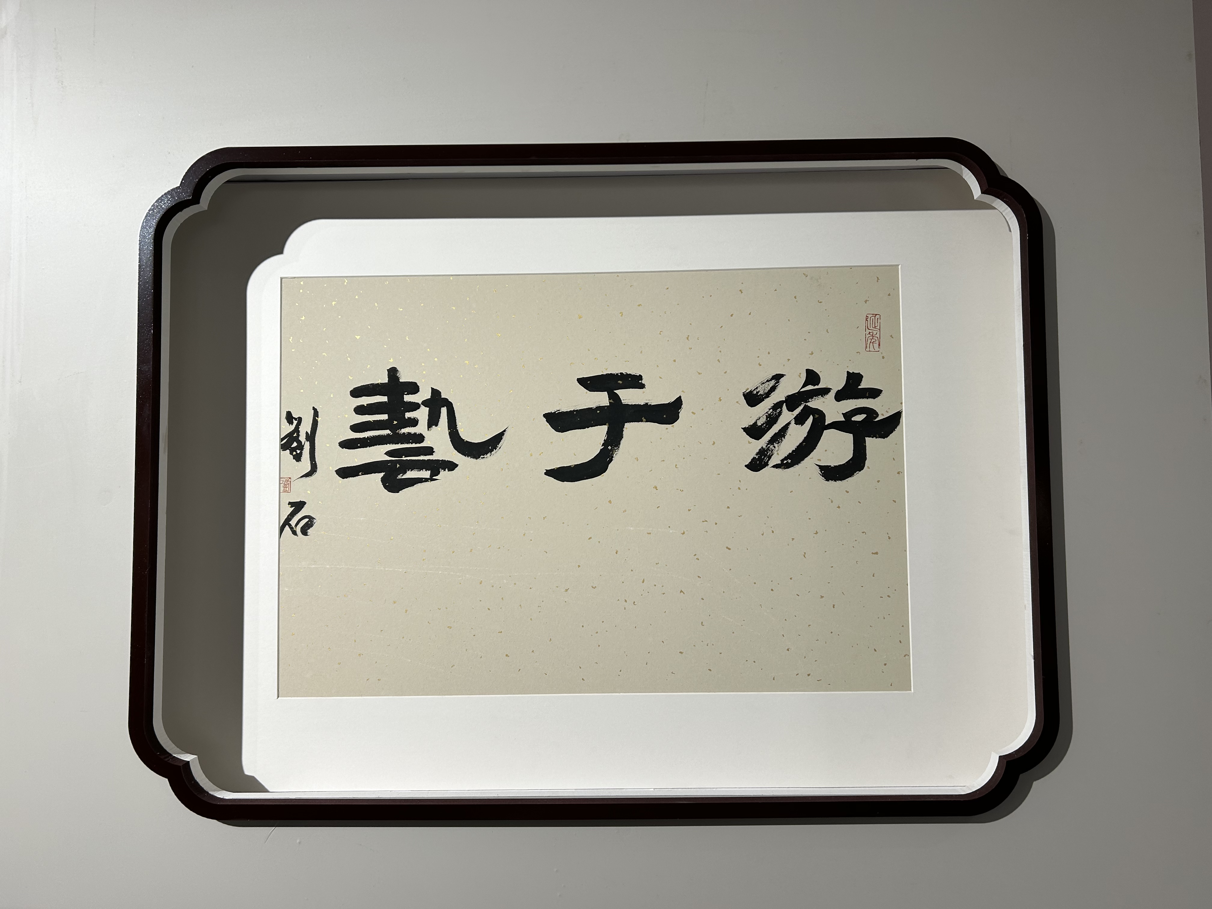 在美术馆的展厅内,刘石、雒三桂、魏学峰三位教授的书画作品错落有致地陈列着。这些作品不仅风格各异,而且每一幅都蕴含着深厚的文化底蕴和艺术价值。戈心悦老师穿梭在展厅之间,时而驻足在刘石教授的书法作品前,仔细品味其清雅韶美的笔触;时而凝视着雒三桂教授的飘逸画作,领略其艺术魅力;又或是站在魏学峰教授的深秀之作旁,思索其中的深邃意境。