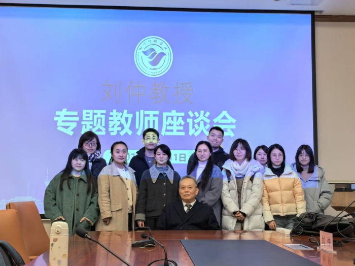 讲座中,刘仲教授围绕“诗人”这一核心,系统阐述了诗人的定义、产生条件,并深入探讨了“天才与工匠”“民族性与世界性”“活在当下与仰望星空”等八组关键命题,其论述兼具理论深度与创作体悟,为在场教师带来深刻启发;讲座结束后,学院教师与刘仲教授合影并进行了现场交流。